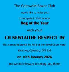 (This Accolade was only held by a handful of Boxer Breeders and was for Newlaithe's significant contribution towards the Breed)